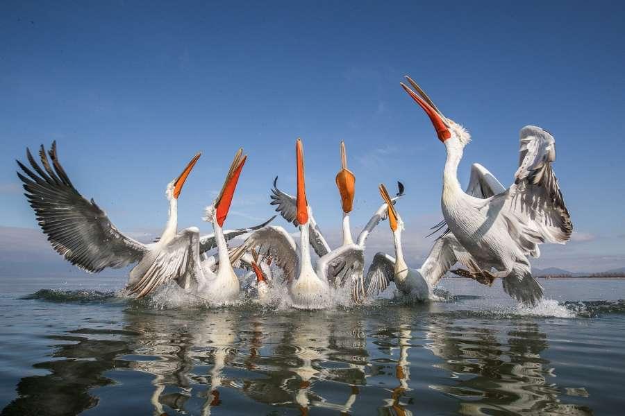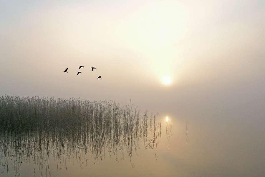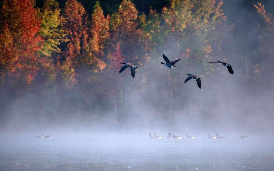 Four Geese Flying Over Swiming