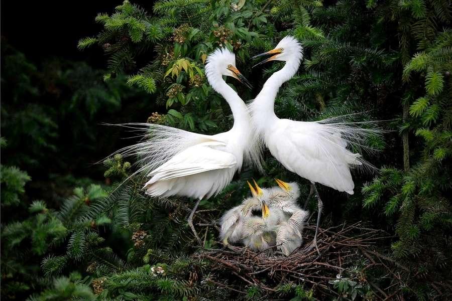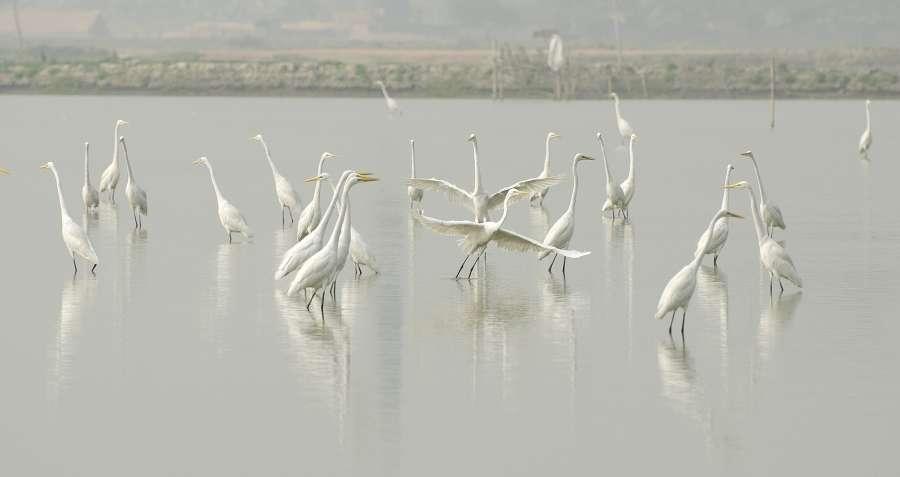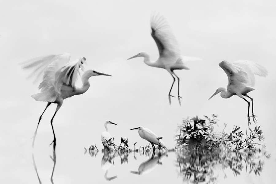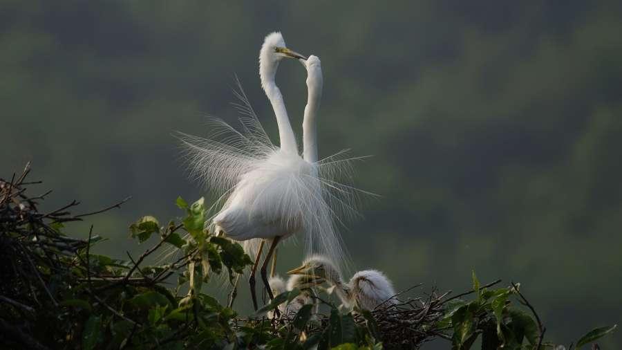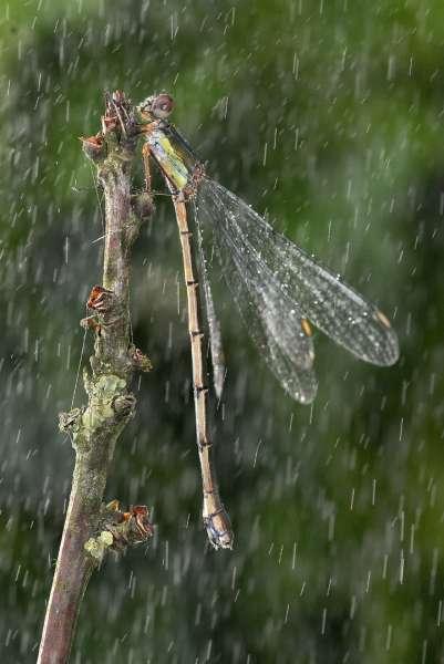 Egret in rain