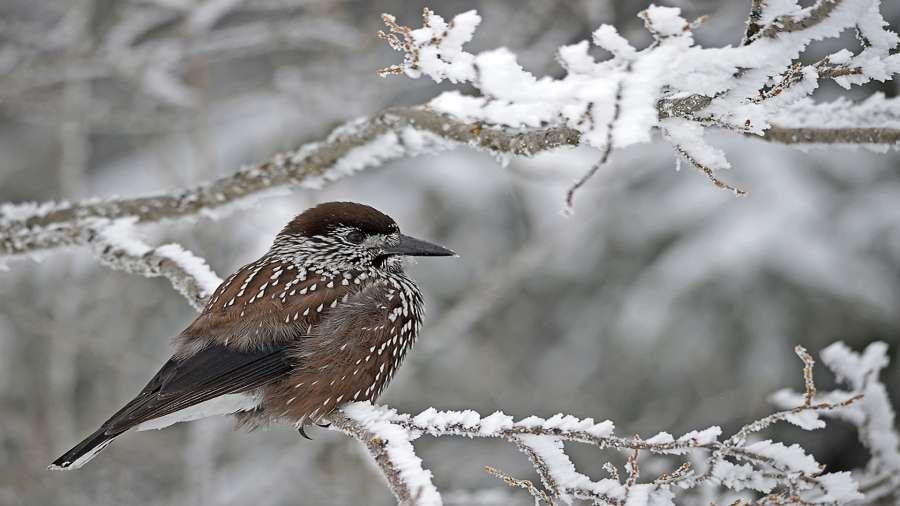Nutcracker On Winter Foliage