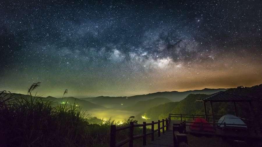 tea farm and milky way