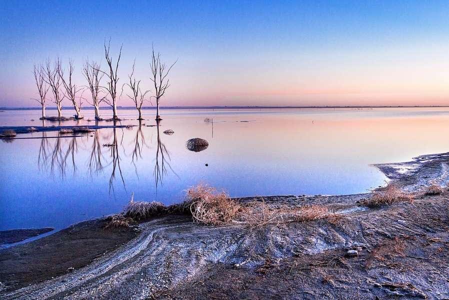 Arboles y reflejos al atardecer