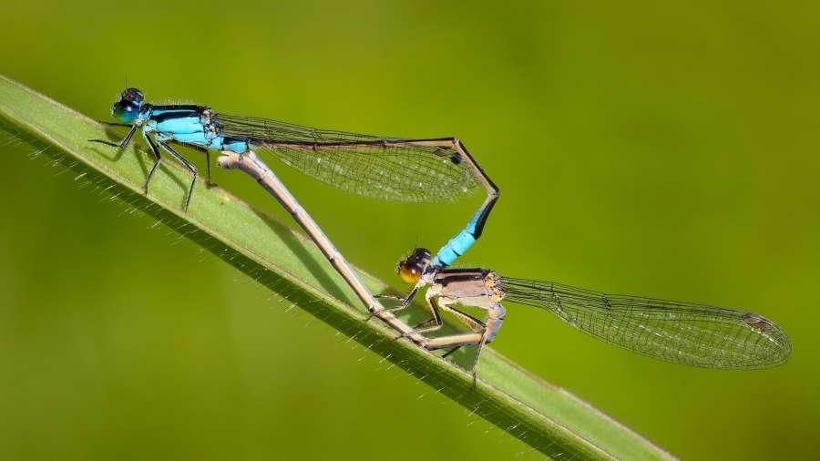 Damselflies On Leaf