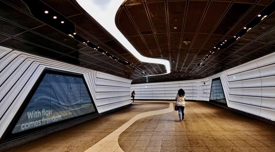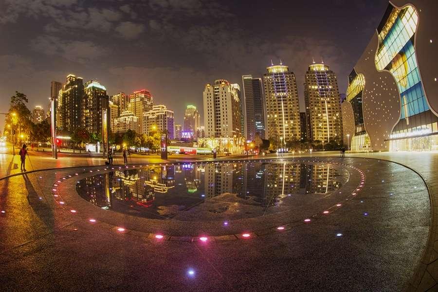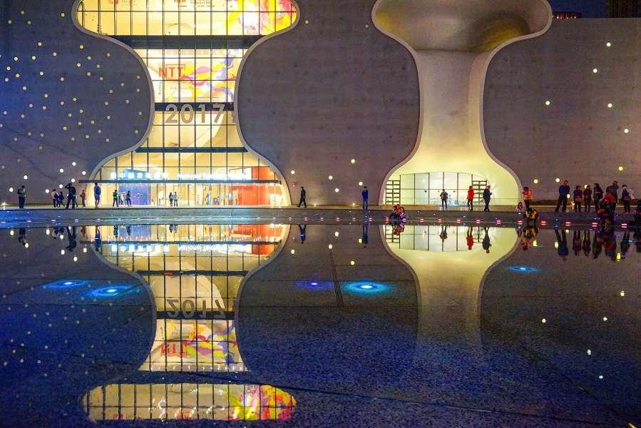 Enjoyable dream life_Taiwan Taichung Opera House bustling crowd walking between real and reflection